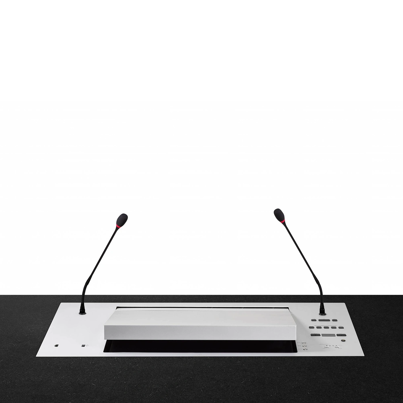 - Integriertes Hebesystem für Mikrofone mit 3-poligen XLR-Anschluss und 500 mm Schwanenhals