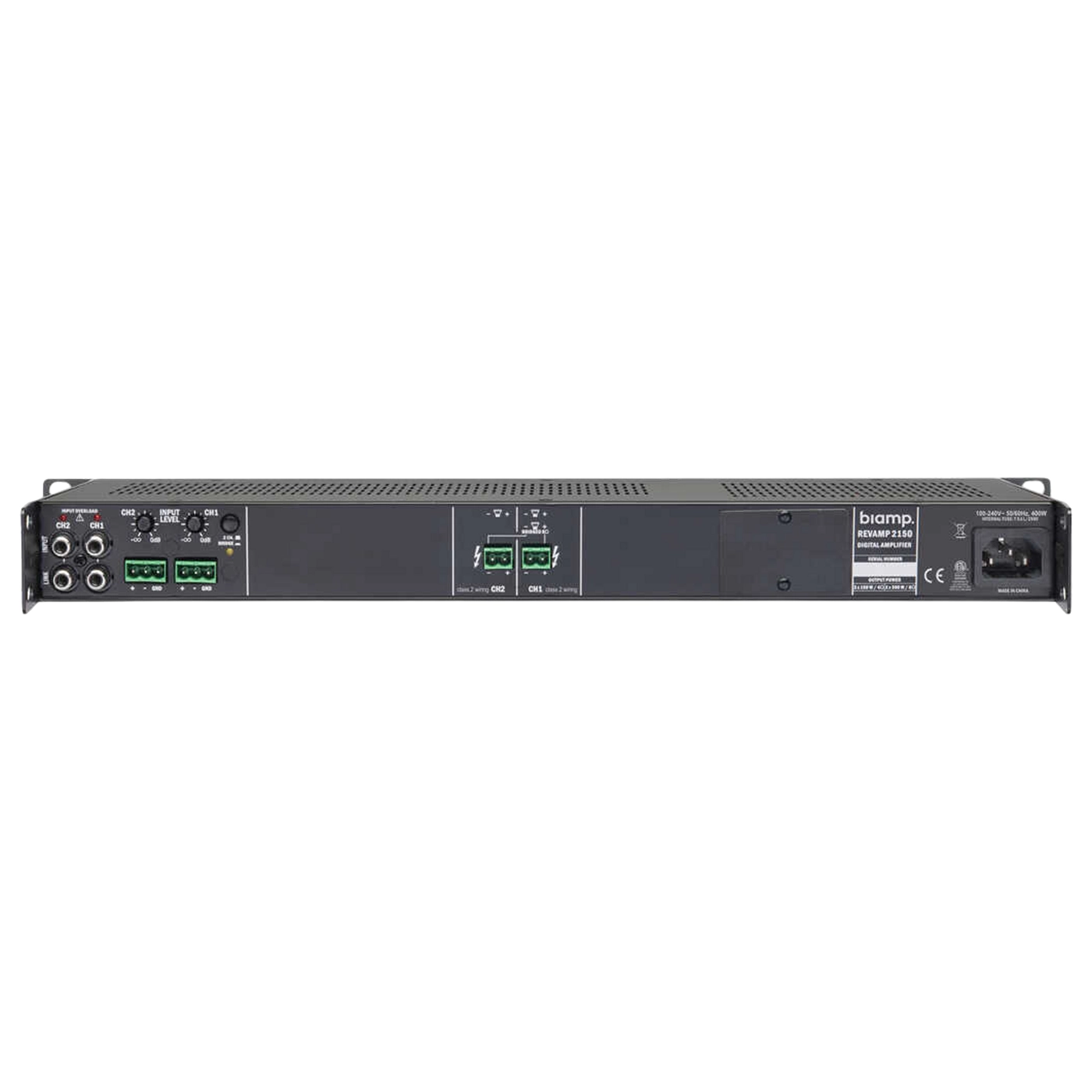 Digital-Verstärker 2×165 Watt,. Hervorragende Kanaltrennung für 2-Zonen-Einsatz.,REVAMP2150 ist ein brückbarer 2-Kanal-Leistungsverstärker mit Konvektionskühlung. Neben den Ausgängen in Class- D-Topologie verfügt der REVAMP2150 zudem über ein hocheffizientes SMPS-Netzteil. ,Für mehr Vielfalt können Installateure zwischen symmetrischen Euroblock-Anschlüssen und unsymmetrischen Eingangs-/Link-Cinch-Anschlüssen wählen. ,Dank seiner hervorragenden Kanaltrennung eignet sich der REVAMP2150 perfekt für Stereo-Anwendungen mit bis zu zwei Mono-Zonen oder einen gebrückten Hochleistungskanal.