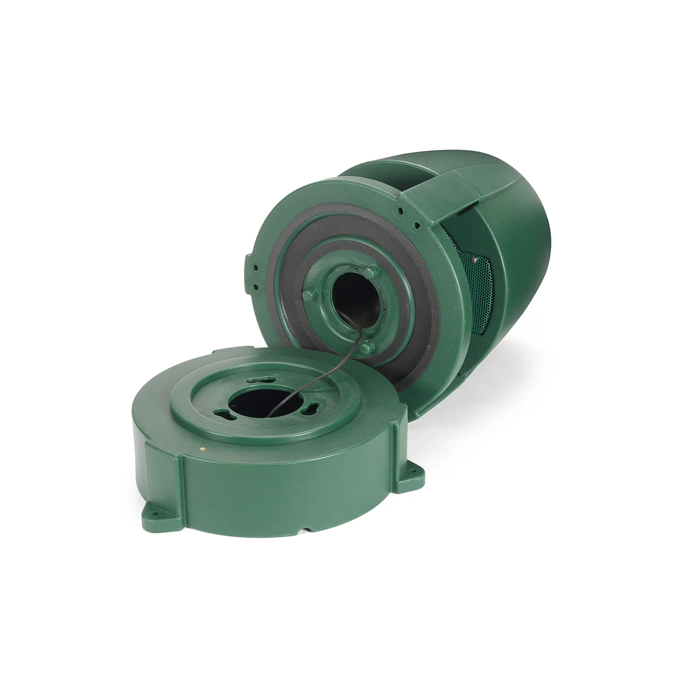 - Grünes Gehäuse für unauffällige Aufstellung im Garten oder zwischen Pflanzen